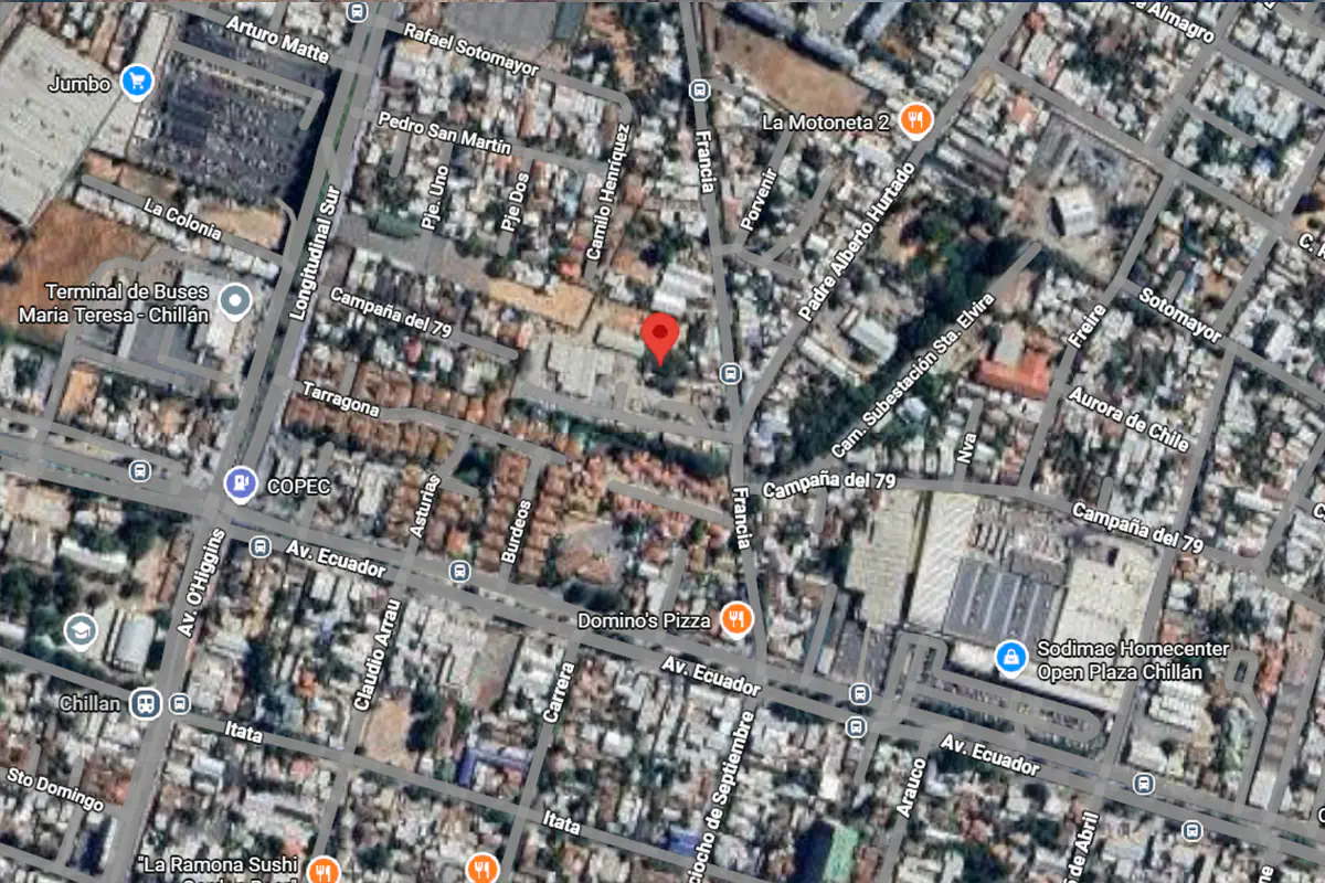 Se vende extraordinario terreno de 1.100 m² ubicado en Avenida Francia, uno de los ejes con mayor proyección y plusvalía de la ciudad. Su emplazamiento estratégico lo ubica a pasos de gigantes comerciales y educativos como Tottus, Sodimac, Inacap y el Terminal de Buses, quedando a tan solo 5 cuadras de la Plaza de Armas de Chillán.